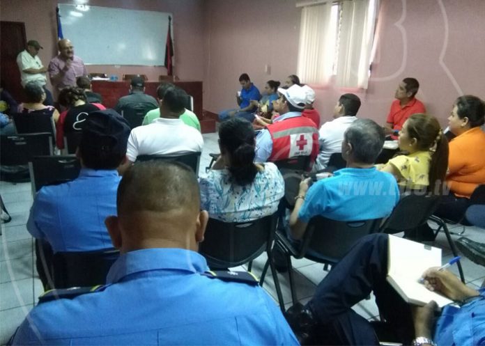 En la sesión participan instituciones como alcaldia municipal, Cruz Roja Nicaragüense, Policía Nacional, Ministerio de Educación, Ministerio de Salud y Juventud Sandinista.