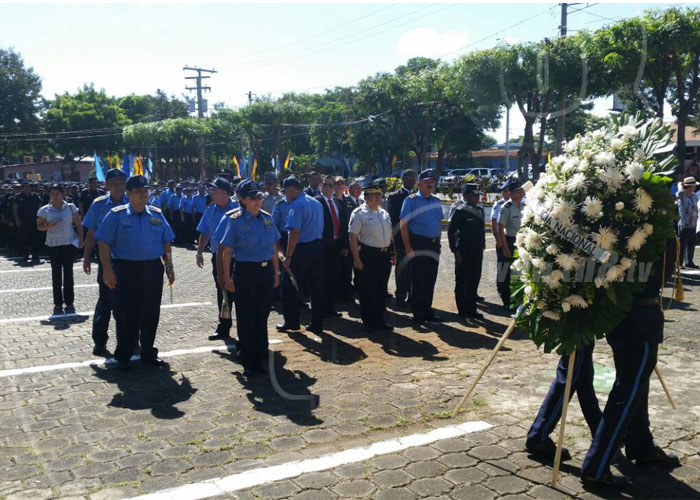 Por ello, el propio día de fundación, los poderes del Estado, el Ejército de Nicaragua, la Fiscalía, todas las estructuras de la institución policial y la jefatura nacional entregaron ofrendas florales en el mausoleo de los caídos en el complejo policial Faustino Ruiz, la sede central.