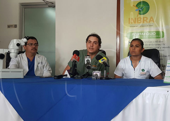 A través del Instituto Nicaragüense de Biotecnología y Reproducción Animal, (INBRA) se realizó el procedimiento de fertilización in vitro en el sector ganadero. Este jueves se dio a conocer el nacimiento de los primeros ejemplares bovinos, permitiendo que Nicaragua se convierta en el primer país de Centroamérica que cuenta con laboratorio para esta técnica que mejora la genética de la ganadería.