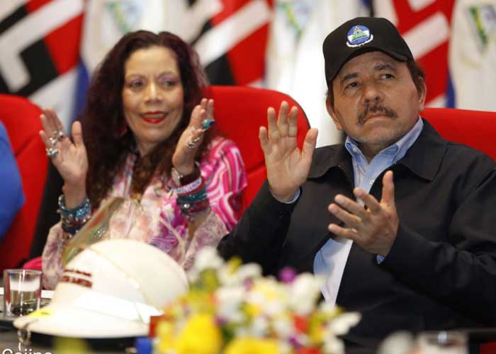 El comandante Enrique Chavarría, Director del Benemérito Cuerpo de Bomberos entregó un reconocimiento al presidente de Nicaragua, Daniel Ortega, y a la vicepresidenta de Nicaragua, Rosario Murillo, por su apoyo a los bomberos del país.