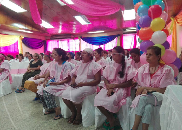 "Nuestros centros de salud están atendiendo a las familias de forma gratuita y (para) atenderse a tiempo… hay mayor posibilidad de cura y sobrevivencia, a las mujeres mayores de 40 años de edad se deben de hacer exámenes de mamografía. En el hospital Bertha Calderón, realizamos terapias, contamos con grupos de apoyos, hacemos quimioterapia que en otros países como Honduras y Costa Rica son muy costosas, aquí atendemos decenas de pacientes y les damos seguimiento hasta su recuperación", expresó la doctora Carmen Cruz, directora del hospital Bertha Calderón.