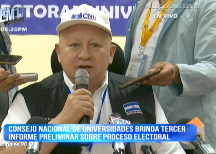 A las 8:20 de la noche de este domingo 5 de noviembre Telémaco Talavera, presidente del Consejo Nacional de Universidades, CNU, brindó tercer informe sobre las elecciones municipales 2017 en Nicaragua, destacando la normalidad y tranquilidad de esta fiesta cívica.