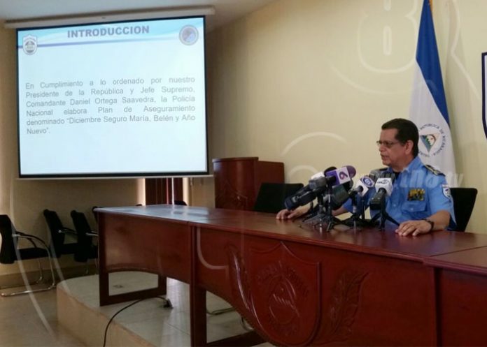 El plan denominado Diciembre Seguro; María, Belén y Año Nuevo, ha sido presentado por el comisionado general Francisco Díaz, Subdirector de la Policía Nacional. "Contribuir a que nuestra familia y de otras nacionalidades, celebren la fiesta de la Purísima, Navidad y año nuevo en paz y tranquilidad, hemos realizado las coordinaciones con diferentes instituciones de gobierno, las principales acciones que son de orden público; prioridad los barrios, mercados, instituciones bancarias, paradas, parques, control e inspección a los talleres de pólvora, puestos en fronteras y la regulación del tráfico", sostuvo el jefe policial en rueda de prensa.