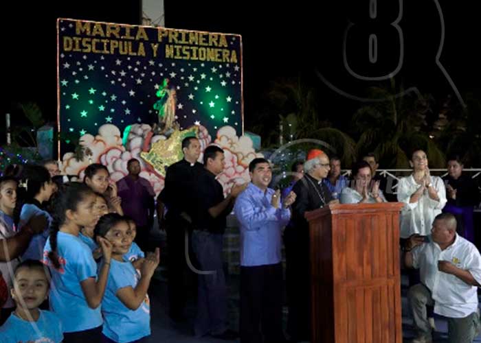 "Damos de esta manera unidos a los obispos en las diferentes catedrales en nuestro país, con este grito y exaltación a nuestra madre, inaugurada esta gran peregrinación mariana. Hoy todo el pueblo católico den Nicaragua va de hogar en hogar, en amor a la virgen, que se han venido preparando para cantar en pequeños altares, ese regalo que Dios nos dio, darnos a María, su madre. María nos ama y nosotros correspondemos a ese amor cantando en nuestros hogares, acogen a miles y miles de peregrinos que van cantando alabanzas al señor", expresó el cardenal Leopoldo Brenes.