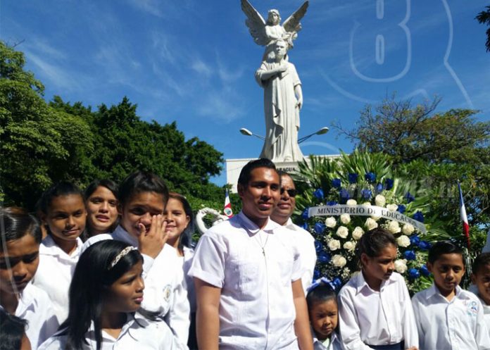 Como canto de ángeles, la niñez nicaragüense se lució con una serenata emotiva desde el monumento a Rubén Darío en el Parque Central de Managua, al norte de la ciudad.