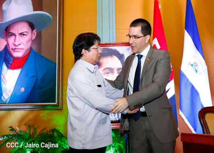 Por su parte, el Canciller de la República, Denis Moncada dio la más cordial bienvenida al Canciller de Venezuela y su delegación. Agradeció al Gobierno legítimo del Presidente, Nicolás Maduro por sostener este encuentro informativo con el compañero, Jorge Arreada.
