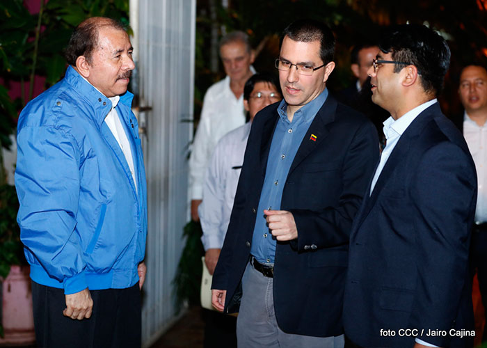 El Presidente de la República, Daniel Ortega y la Vicepresidenta, Rosario Murillo sostuvieron un encuentro de mucha relevancia, con el ministro de Relaciones Exteriores de Venezuela, Jorge Arreaza, quien está de visita en Nicaragua.