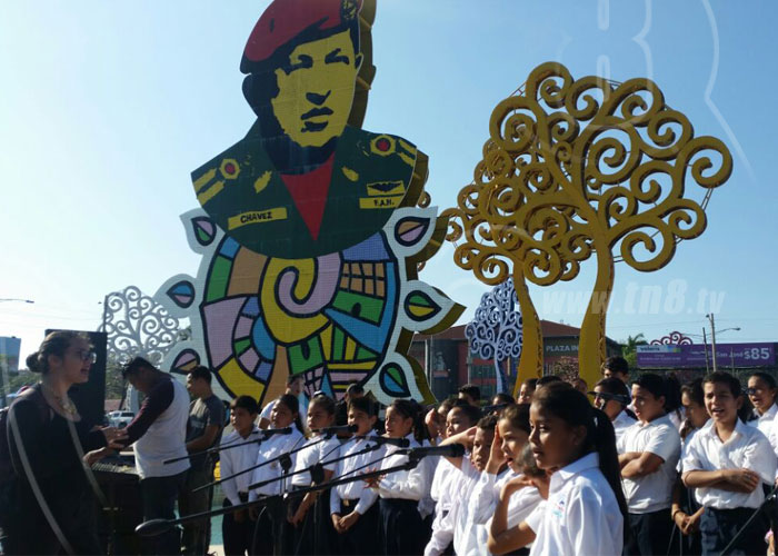 Al cumplirse cinco años de la desaparición física del gigante latinoamericano, el comandante Chávez, Nicaragua preparó un emotivo y significativo homenaje en la recién remozada rotonda que lleva su nombre en una de las avenidas principales de la capital Managua.