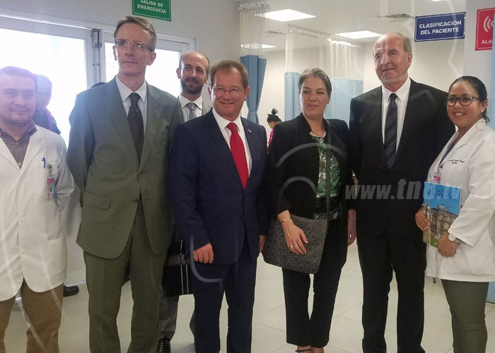 El grupo de senadores franceses que llegaron a nuestro país la tarde este martes, fueron recibidos por médicos del recién construido Hospital Occidental de Managua Dr. Fernando Vélez Paizrecorrido por las instalaciones del edificio, en el área de consulta externa, ultrasonido, mamografía, rayos x, tomografía, entre otros.