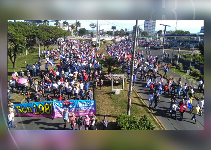 A las 3 de la tarde salió desde la Rotonda Jean Paul Genie una nueva manifestación multitudinaria de familias, militantes sandinistas, juventud y trabajadores; quienes pidieron justicia para las familias y victimas del terrorismo golpista.