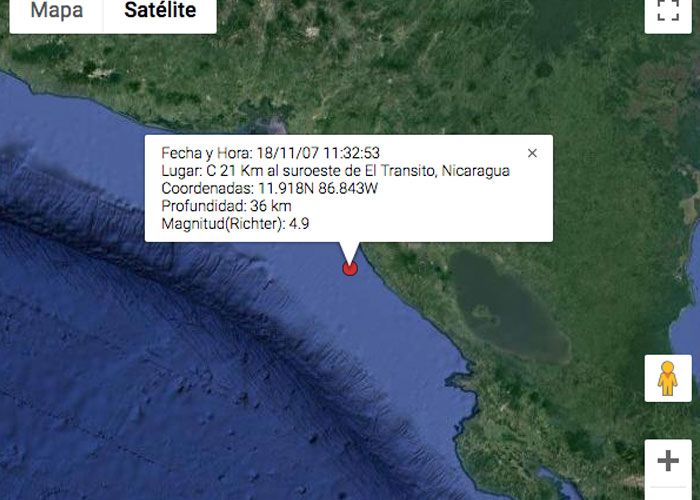 El Instituto Nicaragüense de Estudios Territoriales (INETER) reportó que este temblor tuvo una profundidad de 36 kilómetros, cuyo epicentro se localizó a 21 kilómetros al suroeste de El Tránsito, municipio de Nagarote en el departamento de León.