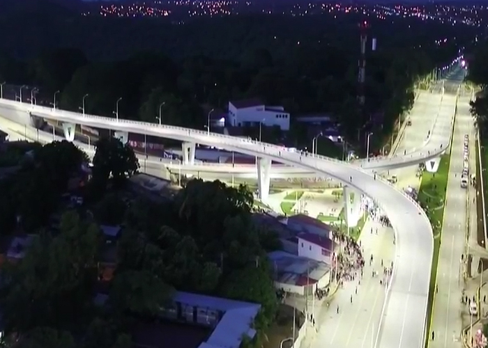 El Presidente Daniel Ortega reconoció la mano de obra de Nicaragua que participó en la construcción de este Paso a Desnivel, "aquí pasan muchos vehículos de los que vienen de otras naciones, tienen que empalmar por esta ruta. Esta es una obra que beneficia a todos los nicaragüenses, sobre todo a quienes tienen que transitar diariamente por esta vía. Nosotros recibimos la obra, es un regalo navideño para el pueblo de Nicaragua. Es la mejor señal de que los nicaragüenses queremos paz, seguridad, trabajo, esparcimiento y estamos construyendo desde el más pequeño empresario hasta el más grande. Nicaragua seguirá caminando y Nicaragua no se ha paralizado, seguimos caminando. Esta es una obra monumental con un diseño bonito", dijo el Presidente Daniel Ortega.