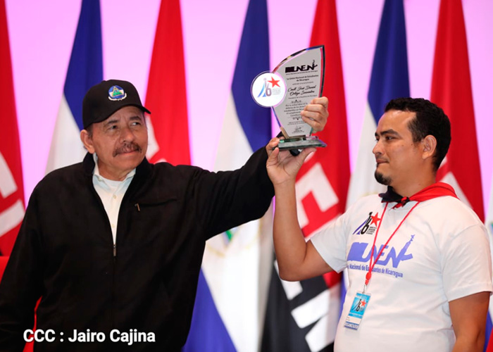 El Comandante Daniel Ortega Saavedra, clausuró este lunes el XVI Congreso de la Unión Nacional de Estudiantes de Nicaragua (UNEN). En este acto el presidente entregó la Orden de la Independencia Cultural Rubén Darío a dirigentes estudiantiles destacados.