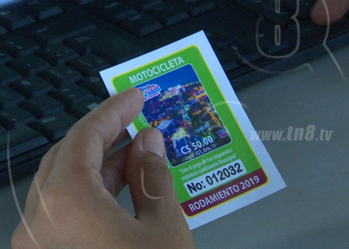 La Ley número 856 en el Art 12 dice que: los propietarios de vehículos automotores deben de presentar ante las Autoridades de la Especialidad de Seguridad de Tránsito de la Policía Nacional el recibo de pago de su impuesto de rodamiento o la calcomanía respectiva del año corriente.