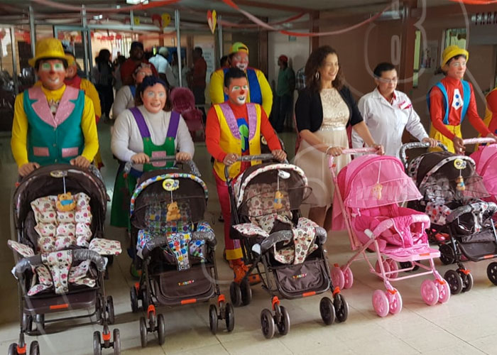 Las sorpresas también llegaron al Hospital de la Mujer, payasos y autoridades del Bertha Calderón acompañaron esta entrega especial.
