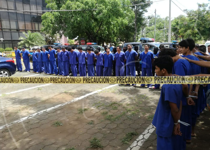 "Josué Abraham Martínez Alemán de 26 años, Miguel Ángel Blandón Cortez de 25 y Cristian Armando Adams Castillo de 20 años formaban parte de la agrupación 'Las Juancheras', operaban en el barrio Monseñor Lezcano y robaron a un ciudadano a las afueras de un banco la cantidad de 426,000 córdobas y 7,100 dólares el pasado 13 de junio", dijo el Comisionado General Sergio Gutiérrez, segundo jefe de la Policía en Managua.