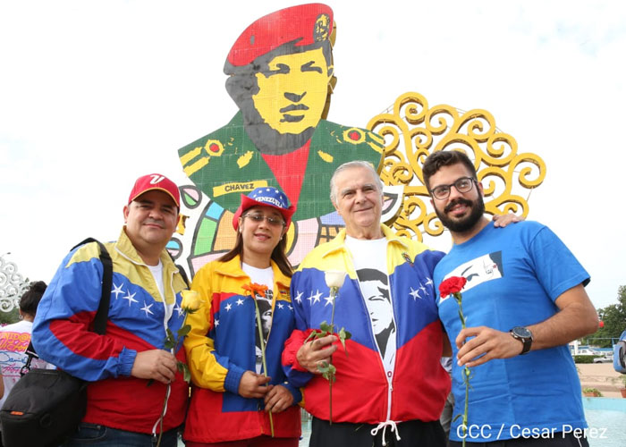"Estamos celebrando 65 años del comandante Chávez, y estamos celebrando 6 años de esta rotonda, hace 6 año fue inaugurada este testimonio de amor, es el testimonio de reconocimiento al comandante, Chávez por parte del pueblo nicaragüense, y yo tengo que decirle que la fuerza de este hombre nacía de las entrañas del pueblo venezolano, este pueblo infinitamente generoso, infinitamente sensible al dolor ajeno, esa valentía indeclinable, esa expresión que dijo "aquí huele a azufre en plena naciones unidas, en las narices del imperio, esa valentía que entregó hasta el último aliento de su vida", mantuvo Javier Arrué, embajador de Venezuela.