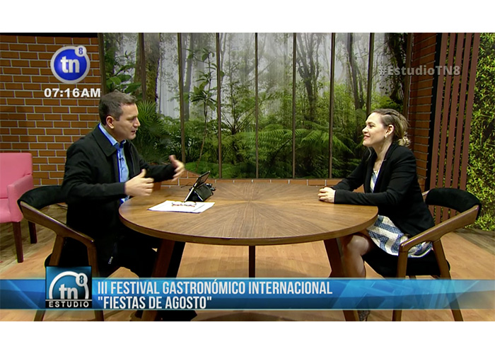 Este jueves, la directora de desarrollo turístico del INTUR, Mara Stotti, habló sobre el tercer Festival Gastronómico Internacional que se llevará este 10 y 11 de agosto en el Centro de Convenciones Olof Palme. Esta exposición se hizo durante el programa Estudio TN8, conducido por Ervin Vega.