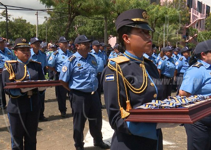 En un emotivo acto, la Policía Nacional condecoró a 117 oficiales activos que participan en la institución del sistema público de seguridad de Nicaragua de hace 40 años.