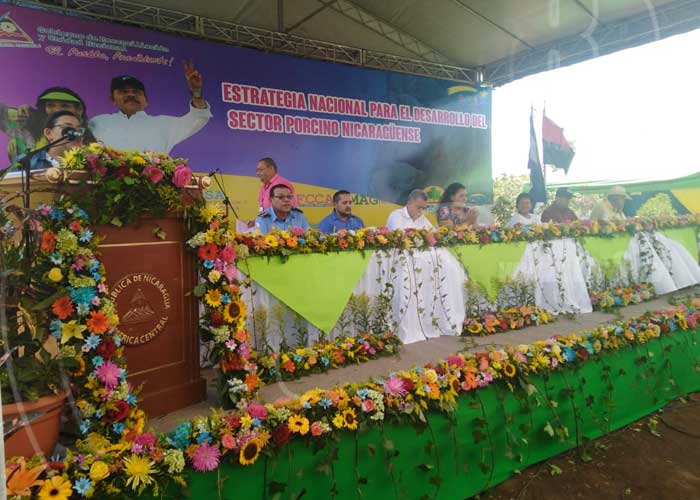 En una granja del municipio Mateare, el Sistema de Producción, Consumo y Comercio realizó este lunes el lanzamiento de la Estrategia Nacional para el Desarrollo del Sector Porcino Nicaragüense.