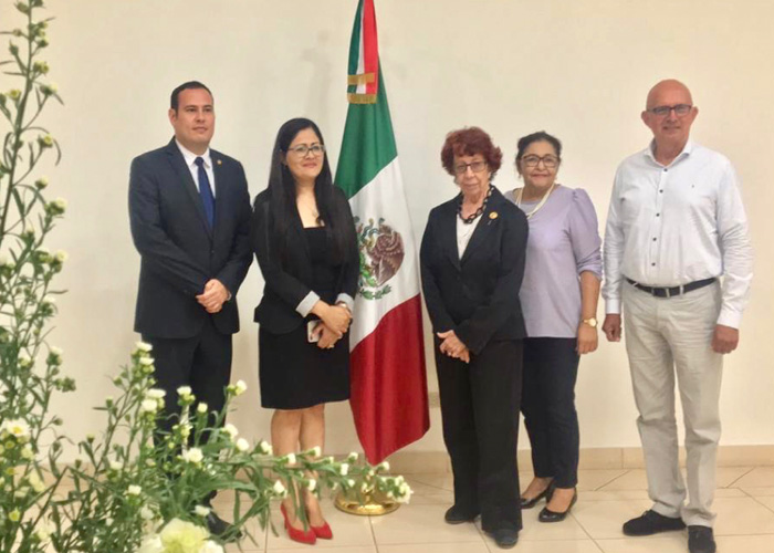 La embajadora de México en Nicaragua, Carmen Moreno, recibió muy cordialmente a la delegación del GRUN, conformada por la compañera Miriam Ráudez, Ministra de Educación; Compañero Luis Morales, Ministro de Cultura, Compañero Sidhartha Marín, ministro asesor del Presidente para políticas y asuntos internacionales y Arlette Marenco, ministra-asesora para las relaciones exteriores.