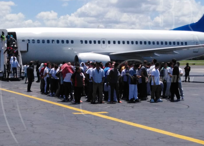 Al no poder cumplir su sueño americano, este miércoles en el Aeropuerto Internacional Augusto César Sandino, autoridades de distintas instituciones de Gobierno dieron una fraternal bienvenida a 129 nicaragüenses, 14 mujeres y 115 varones, que fueron deportados de los Estados Unidos.