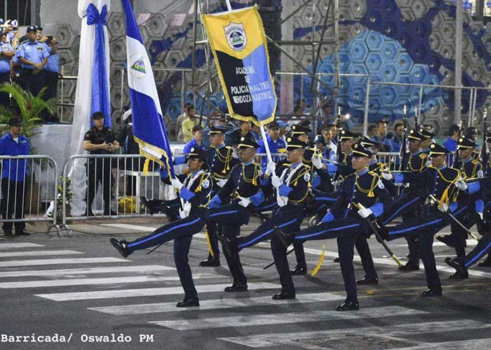El Presidente de la República Daniel Ortega, la vicepresidenta Rosario Murillo, el primer comisionado Francisco Díaz, la Jefatura y el Consejo Nacional de la Institución de Seguridad Pública, presidieron el desfile de las fuerzas y medios operativos de la Policía Nacional de Nicaragua, acto que se realizó en la Avenida de Bolívar a Chávez.