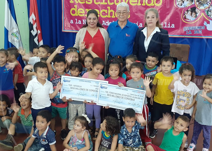 6 millones de córdobas se entregó al Ministerio de la Familia, que trabaja firmemente por el bienestar de la infancia, a través de la educación brindada en los Centros de Desarrollo Infantil.