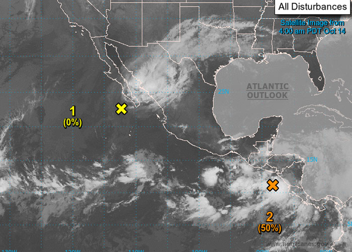 "Una amplia área de baja presión ubicada a unos cientos de millas al sur de la costa de Guatemala está produciendo lluvias desorganizadas y tormentas eléctricas.