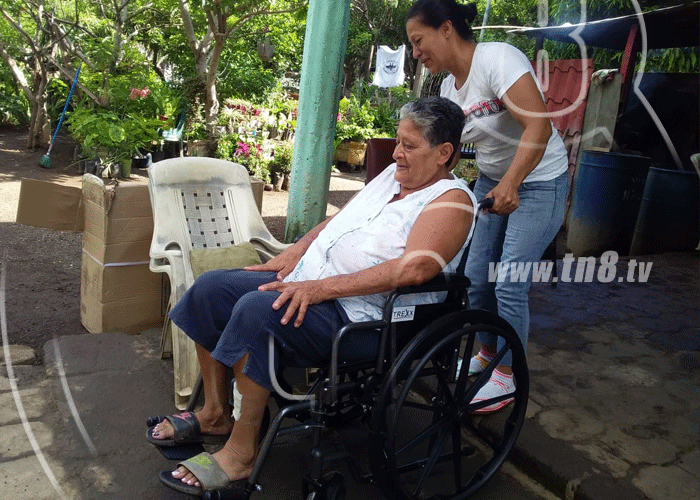 "A ustedes también gracias por la amabilidad de haberme traído la silla y que no duré mucho tiempo en esperarla, que se lo pedí a Dios primero y después a ustedes; muchas gracias al presidente Daniel Ortega, también a su esposa Rosario Murillo quienes hicieron posible esto y yo la necesitaba bastante, mañana tengo cita en el hospital", relató doña Amparo del Socorro Torres, habitante de Ciudad Sandino.