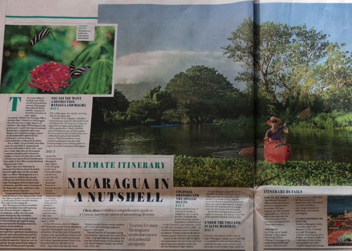 “El mejor itinerario, Nicaragua en pocas palabras” es el artículo del periodista Chris Moss publicado el 26 de octubre, en el diario nacional británico The Telegraph que destaca que “el turismo significa paz y prosperidad para los nicaragüenses”, que Nicaragua ofrece una “asombrosa diversidad”, y que los nicaragüenses somos “inteligentes y cálidos, de espíritu libre” Y describe a nuestro país como una “República orgullosa”.
