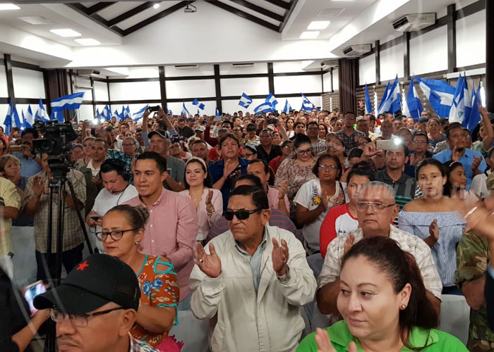 “Reunidas las comisiones municipales del departamento de Managua, estamos aquí presentando la estrategia para una cultura de dignidad y respeto, de no violencia, reconciliación y paz, con el objetivo fundamental de ir regenerando, de ir generando conciencia en todos nosotros, tanto a nivel de las instituciones, como también a nivel de la familia, a nivel de las comunidades, a nivel de los barrios, que podamos realmente generar conciencia y luego llevar a la práctica toda esta cultura de respeto; a la cultura de convivencia, de paz, de tranquilidad y de vida armoniosa”, explicó Giomar Irías, titular del Instituto Nicaragüense de Fomento Municipal, INIFOM.