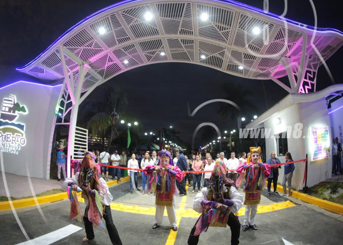 Autoridades de la Empresa Portuaria Nacional (EPN), inauguraron la noche de este miércoles, con mucha alegría, la entrada principal del Puerto Turístico Salvador Allende, obra que tuvo una inversión de 5 millones de córdobas.