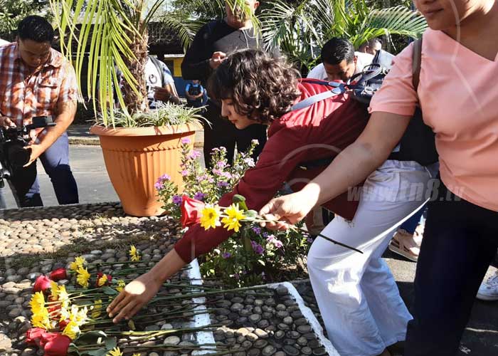 El homenaje fue realizado en el monumento construido frente a la Laguna de Tiscapa para honrar la memoria del también periodista José Julián Martí Pérez.