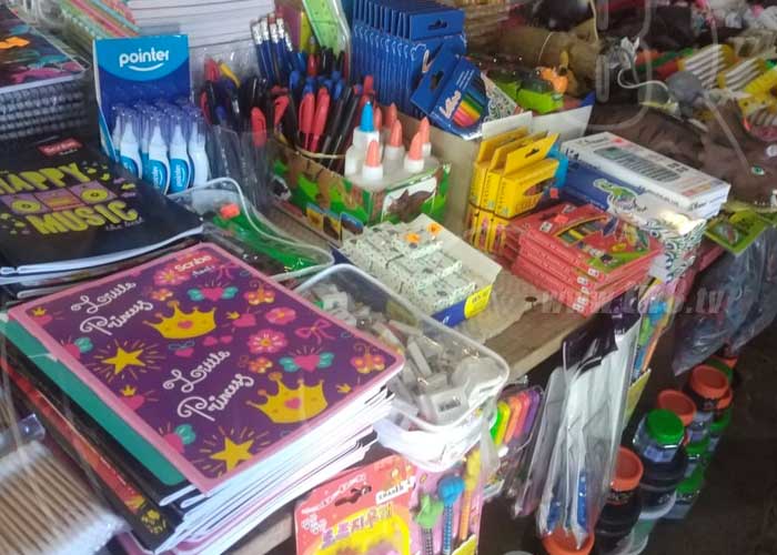 "En los cuadernos pequeños marca Escribe le salen a C$8 córdobas por unidad, por docena a C$6, el latino espiral a C$19 la unidad y a C$17 por docena. Tenemos doble raya, rayado, cuadriculado, el cocido grande a C$26 por unidad, C$24 por docena, los que más busca la gente es el universitario grande, blog a C$5 córdobas, la docena de lápiz de grafito sale a C$25 córdobas. Tenemos pega, tajadores, borradores, reglas, todo a precios accesibles", dijo Jonathan Alberto Rojas, comerciante.