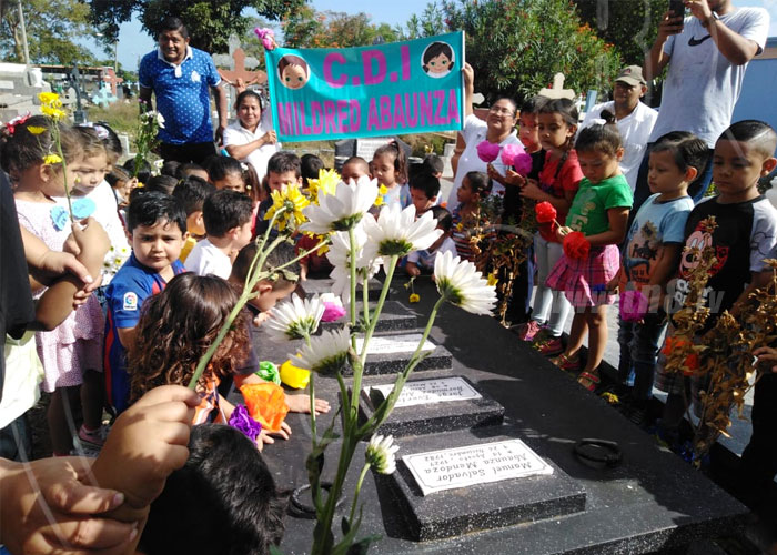 Al Cementerio Periférico acudieron niños y niñas del Centro de Desarrollo Infantil Mildred Abaunza a honrar a la mártir de la revolución, en cuyo homenaje lleva su nombre esa institución.