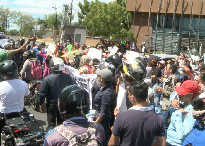 Trabajadores que desempeñan labores en los supermercados Maxi Palí, Palí y La Unión, se plantaron frente a las oficinas de Walmart Nicaragua, exigiendo mantener sus empleos que según su protesta perderían por causa de la llamada promotoría eficiente.