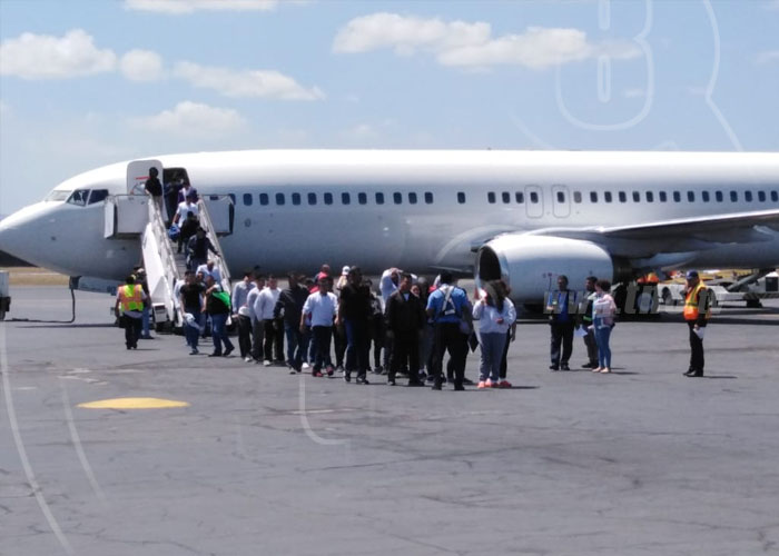 Los 56 hombres y seis mujeres fueron recibidos en el Aeropuerto Internacional Augusto C. Sandino, por autoridades del Ministerio de la Familia, el Ministerio de Gobernación y Ministerio de Salud en nombre del buen Gobierno con una fraternal bienvenida.