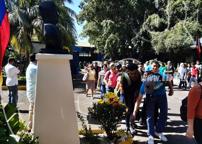 Docentes, estudiantes y personal administrativo participaron en la entrega de ofrenda floral en el busto edificado en su honor, justo en la entrada del centro tecnológico.