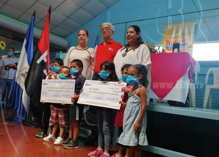 El gerente general de la Lotería Nacional, Ernesto Vallecillo, entregó dos cheques, cada uno por 7 millones 500 mil córdobas. "Con este aporte alcanzamos los 60 millones de córdobas que representa un 32.97% de la meta propuesta para este año", refirió el funcionario.