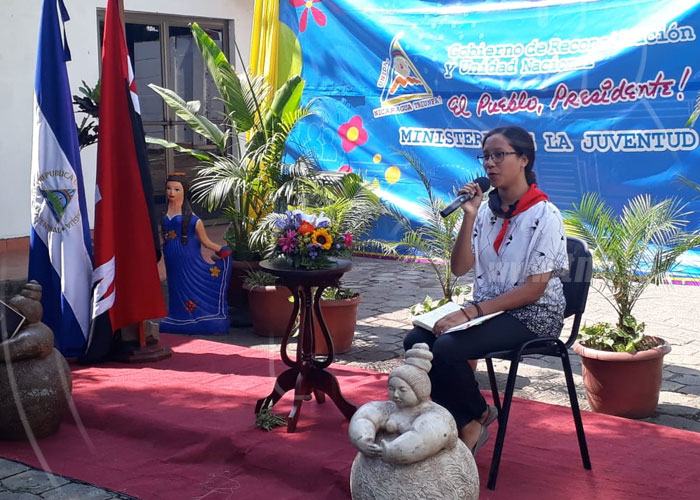 "Participando en lo que es el recital de poesía en conmemoración al 8vo año de paso a la inmortalidad de nuestro comandante Tomás Borge y el poema que yo le realicé a nuestro comandante, fue el día de ayer por la noche y me inspiró su lucha, me inspiró su convicción y su firmeza, cómo ese hombre hasta el último minuto de su vida jamás, jamás dio vuelta atrás y siempre fue, siempre ha sido mi inspiración en seguir firme, seguir firme luchando por esta Revolución", enfatizó la joven poeta Mildred Moreira.