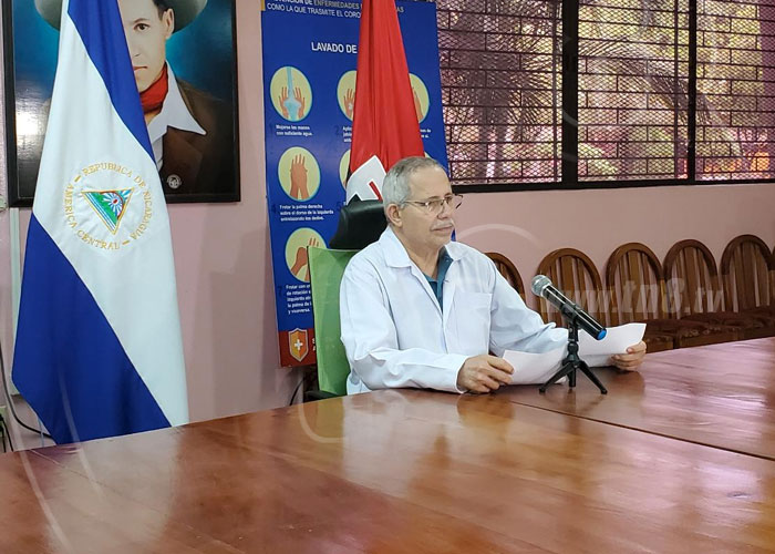 El doctor Carlos Sáenz, secretario general del Ministerio de Salud, ha dado lectura a la nota de prensa, desde las instalaciones del complejo nacional de salud, Concepción Palacios, en Managua.
