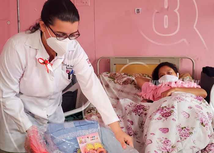 En el hospital de la mujer Bertha Calderón, ubicado en la zona occidental de Managua y que es una referencia nacional, llevó regalos a las mujeres que dieron a luz en los primeros minutos de este sábado.