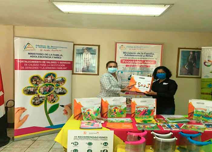 Ayer, 24 de Junio, el Ministerio de la Familia, Adolescencia y Niñez (MIFAN), recibió del Organismo No Gubernamental World Vision International Nicaragua, una donación de 576 Kits de Protección Personal e Higiene, 1,960 Kits lúdicos para el Programa Crianza con Ternura, 12,000 Afiches Informativos y 2,500 Calendarios, por un monto de inversión de U$26,200 dólares, en apoyo a la prevención y contención del COVID-19.