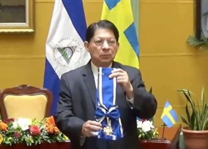 Este jueves, el Gobierno de Nicaragua otorgó la Orden José de Marcoleta, en grado de Gran Cruz, al embajador plenipotenciario del Reino de Suecia, como el más alto reconocimiento a la exitosa labor diplomática que realizó en el país durante 3 años.