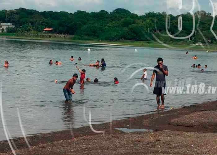 Familias disfrutan con alegría este fin de semana patrio en las aguas de la laguna de Xiloá.