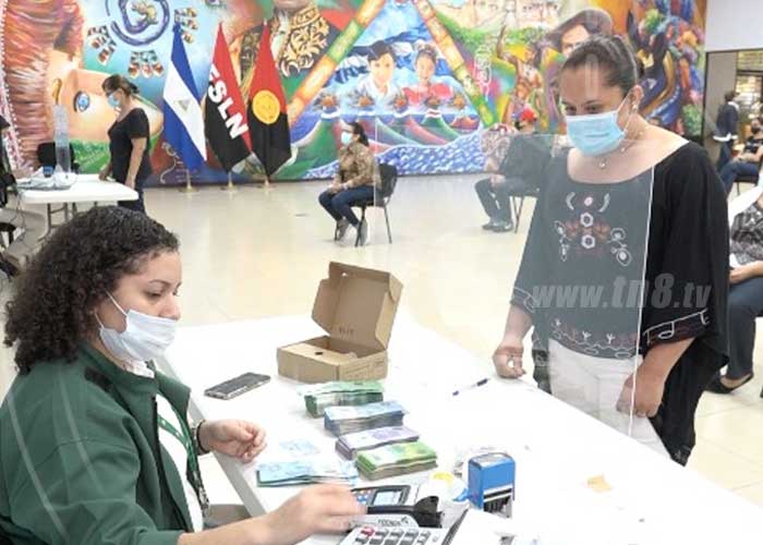 En el auditorio Elena Arellano, que se ubica en la sede central de esta institución del Estado en Managua, se habilitó para que en orden y con todo el protocolo de higiene, los servidores públicos reciban su salario.