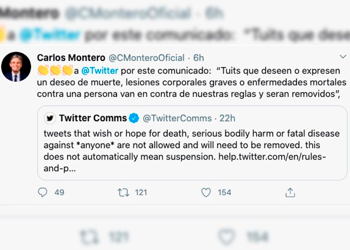 La red social estadounidense Twitter este sábado dio a conocer a través de un comunicado que removerá de las cuentas de sus usuarios los contenidos que expresen deseo de muerte, daños corporales graves o enfermedades fatales a cualquier persona, lo que no significa la automática suspensión, también señala la actualización de reglas; el analista nicaragüense Adolfo Pastrán destacó que esta fue una decisión acertada. Aquí la nota completa.