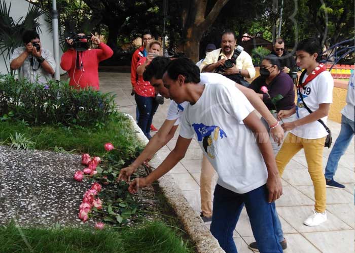 "Nos hemos reunido en este espacio santo, este espacio que representa esperanza, pero también representa el descanso de esas memorias eternas. Hoy la juventud nos venimos a saludar, pero, más que saludar, a ofrendar esa flor que con mucho amor se merecen los rostros y la imagen: la inspiración del Frente Sandinista", expresó Alex Galeno, del Consejo Nacional de Juventud en Nicaragua.