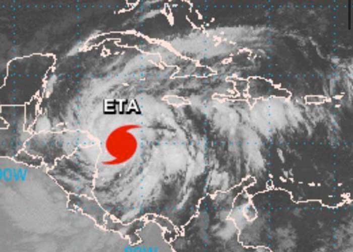 El huracán ETA se ubica a 201 km de la ciudad de Bilwi la mañana de este lunes, con vientos superiores a los 170km/h, lo que lo hace un huracán categoría 2.